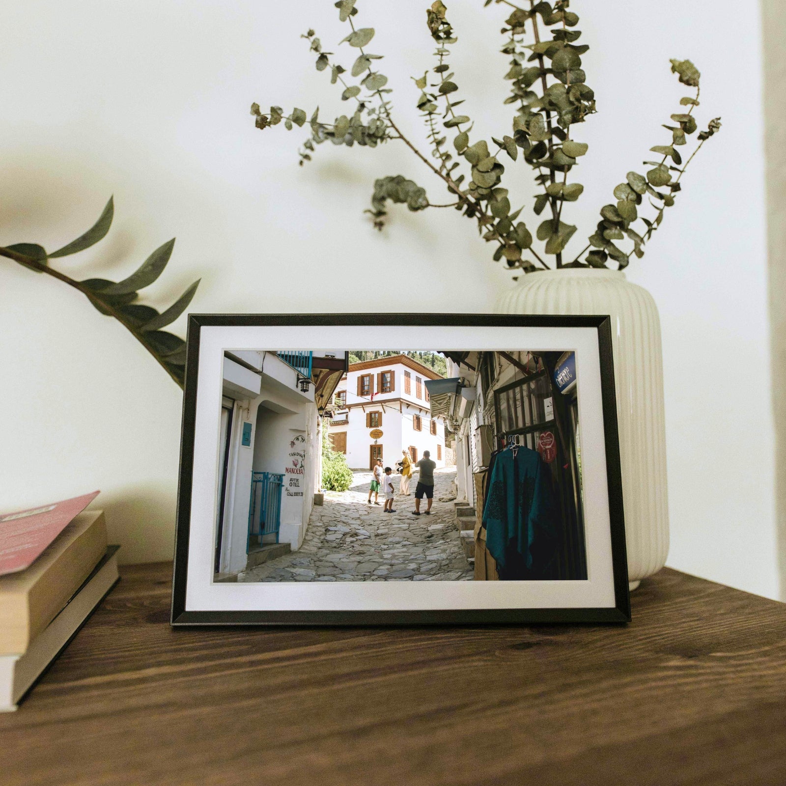 Snap a pic in Greece → tap Send → it’s on Grandma’s mantel with your note.
